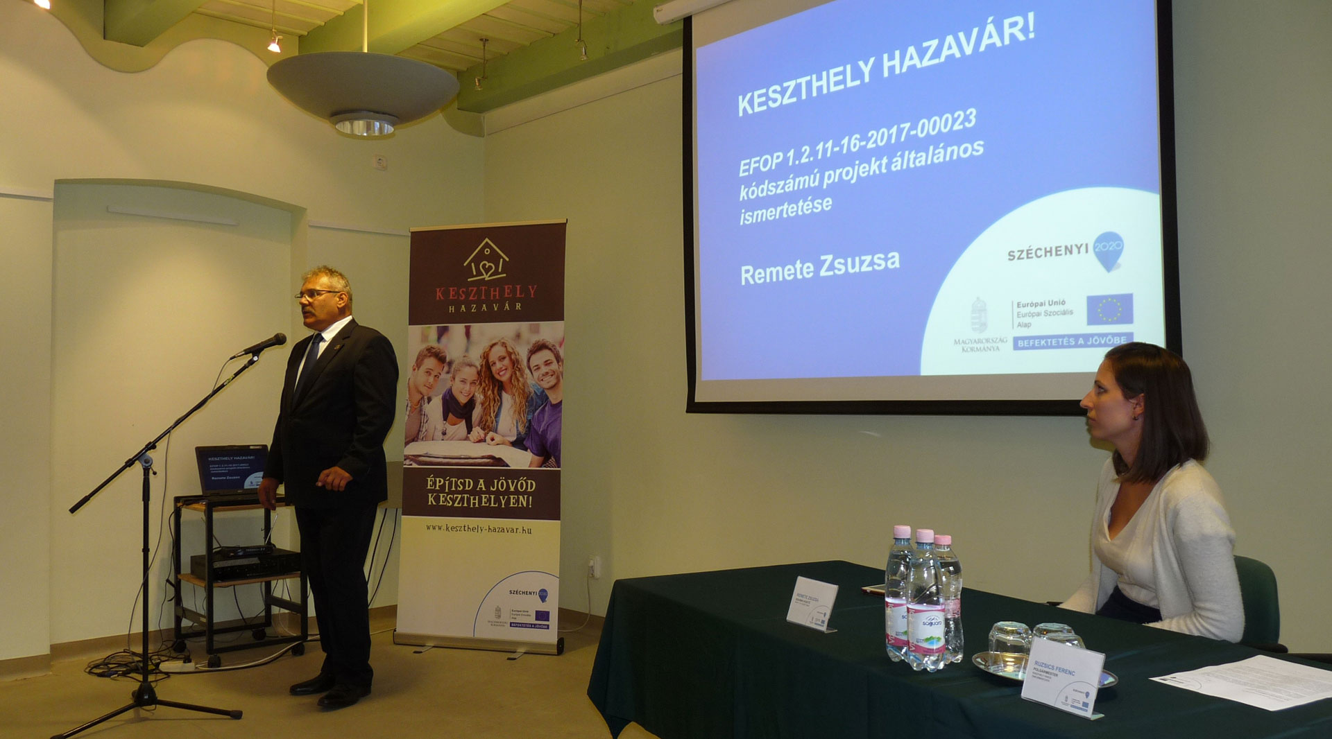 Az eseményen elsőként Ruzsics Ferenc, Keszthely város polgármestere köszöntötte a megjelenteket. Mint fogalmazott, a Keszthely hazavár! projekt fontos a város számára, hiszen a településen nagy problémát okoz a fiatalok elvándorlása. Ezt a folyamatot az önkormányzat szeretné megállítani, és a fiatalok számára olyan alternatívát kíván a jövőbe felvázolni, amiért megéri Keszthelyen maradniuk.